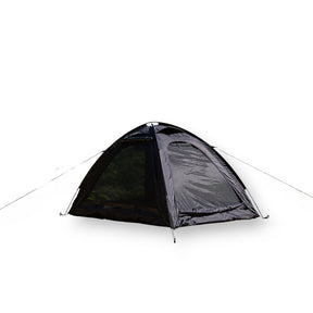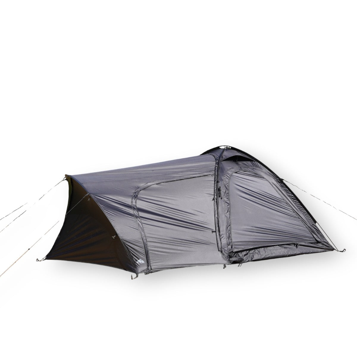 前幕を取り付けると、足を伸ばしてゆったりくつろげる前室付きソロテントとして使用できます。