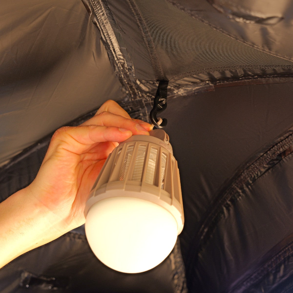テント上部には便利なランタンフックを標準装備。