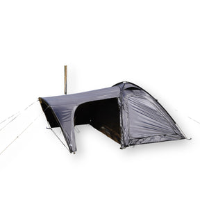 前幕を付けず、自立式テント単体で使用すると、ストーブテント「ノナ」シリーズをはじめ、ワンポールテントやシェルターにもぴったり収まるインナーテントとして活躍します。