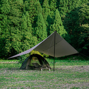 雨天時はタープなどを併用していただくことで、雨の侵入をさらに軽減できます。