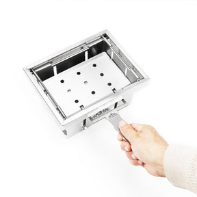 2.ロストル部分を上にして、両手はグリル本体の両側を握ります。