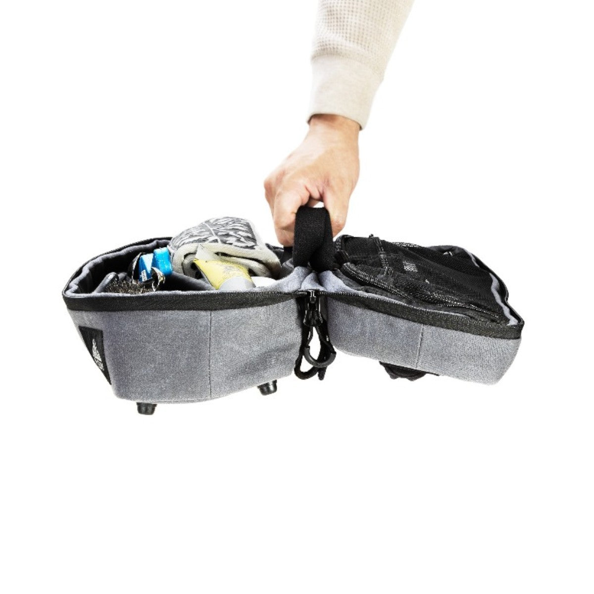 内側にはメッシュポケットを設け、細かなアイテムも整理して収納することができます。